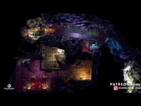 This animated and static battlemap set plunges players into a deep, atmospheric cave system filled with eerie magic and forgotten chambers. Vibrant colored lighting guides the way through winding tunnels, ancient crypts, and glowing underground rivers. The layout supports split-party exploration, ambushes in tight corridors, or climactic boss fights beneath looming statues and arcane crystals. Use it to stage a necromancer’s hidden lair, a forgotten dwarven shrine, or a cursed tomb sealed by the elements. Every room invites tension and discovery—perfect for suspenseful dungeon crawls, deadly puzzles, or lost lore revelations.
