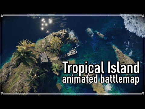 Nestled in crystal-clear waters, this small tropical island is the perfect setting for seaside adventures, pirate hideouts, or mysterious castaway encounters. A weathered wooden shack sits among swaying palm trees, surrounded by jagged rocks, a broken pier, and coral-filled shallows. Gentle waves crash against the rocky shore as seabirds circle overhead. Whether you're planning a smuggler’s secret base, a meeting point for oceanic factions, or just a peaceful interlude under the sun, Tropical Island provides a vivid, atmospheric location with both animated and static versions, gridded and gridless options included.